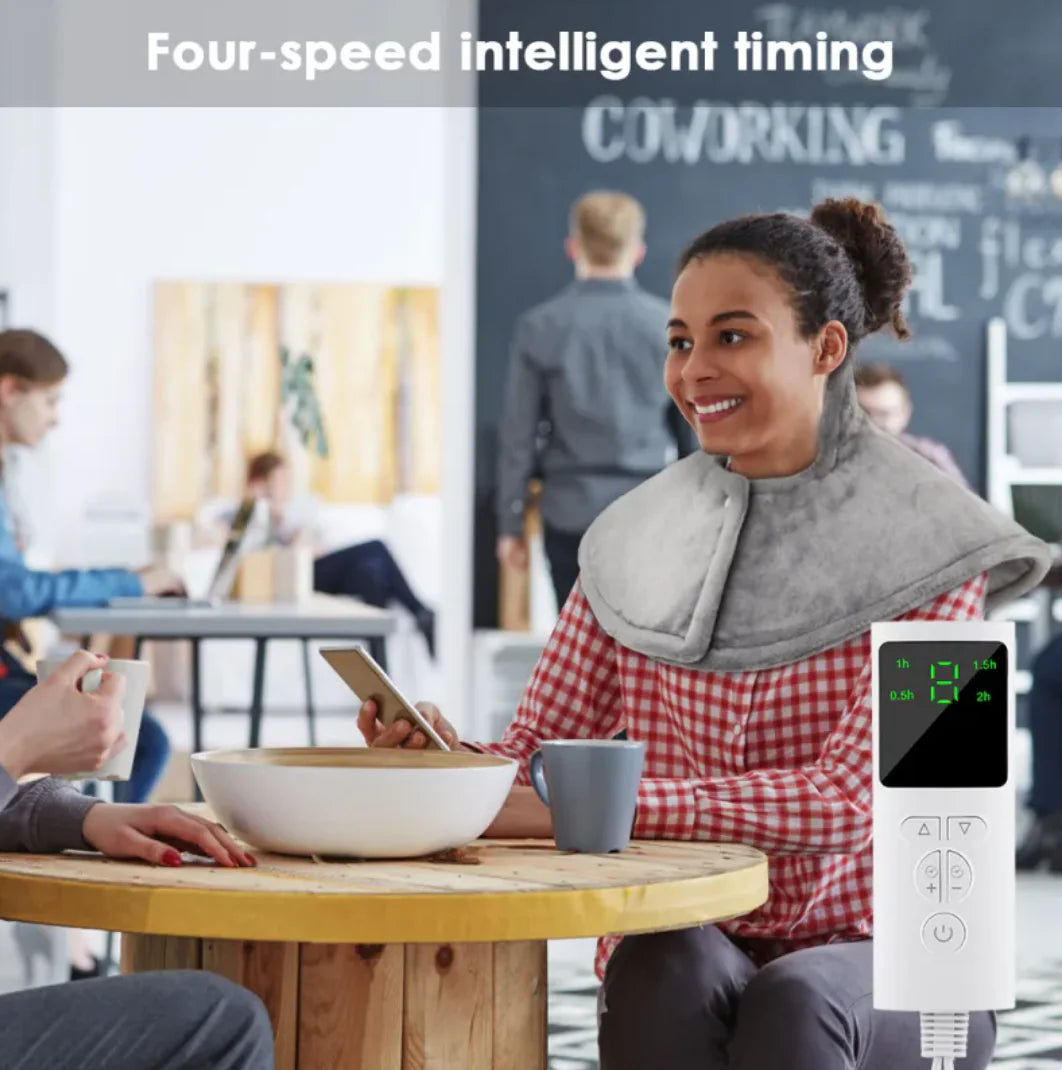 A soft, wearable heated shawl that keeps your shoulders, neck, and upper back warm. It heats up quickly, feels incredibly soft, and gives you comfortable, personal warmth at home or at your desk.