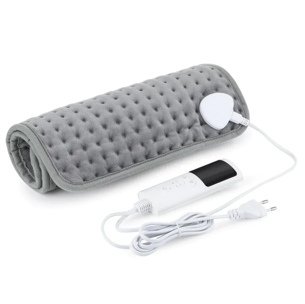Crystal fleece fabric · Gray color · Heating Mat: 30×60 cm · Shawl: 34×57 cm · US/EU/UK plug options · CE/ROHS/FCC/UKCA certified.